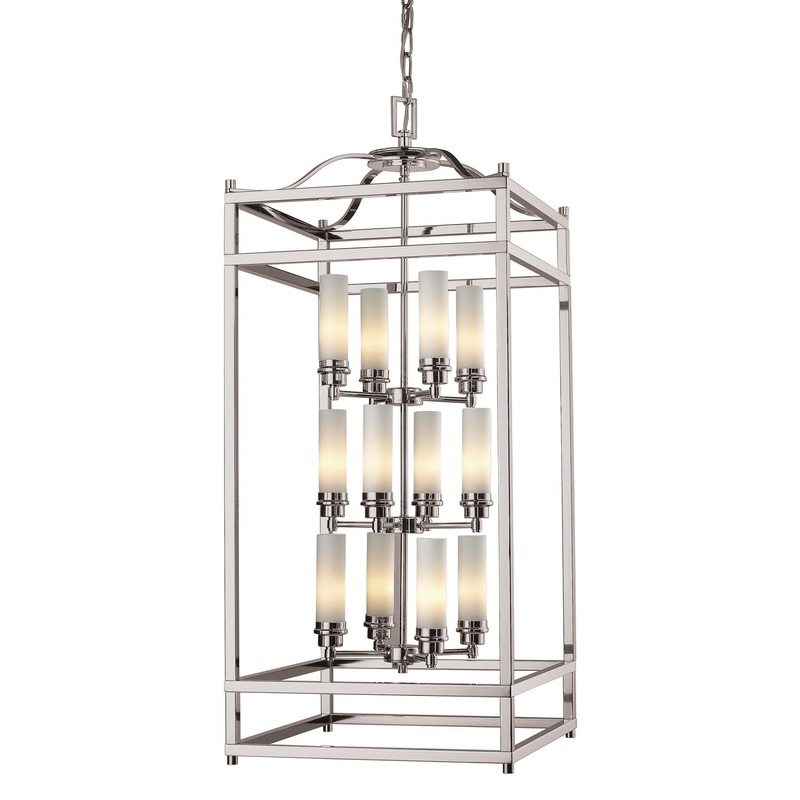 Specifications for this Z-Lite 12 light ChandelierWith a sleek brushed nickel finish, this twelve light chandelier uses matte opal cylinder shades to create a cutting edge look. Elegant uncluttered appeal with clean lines complete a modern look, making thi