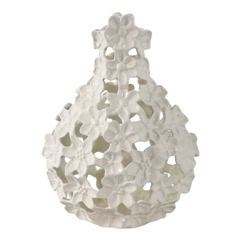 12×9 Cut-out Flower Metal Vase, Ivory
