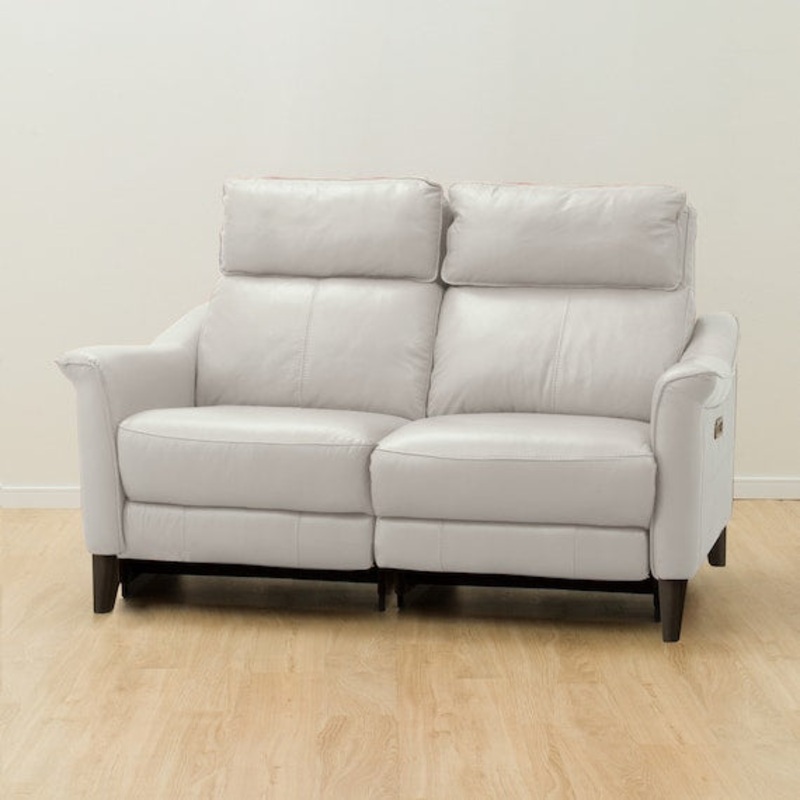 An electric reclining sofa made of supple leather with surface strength.