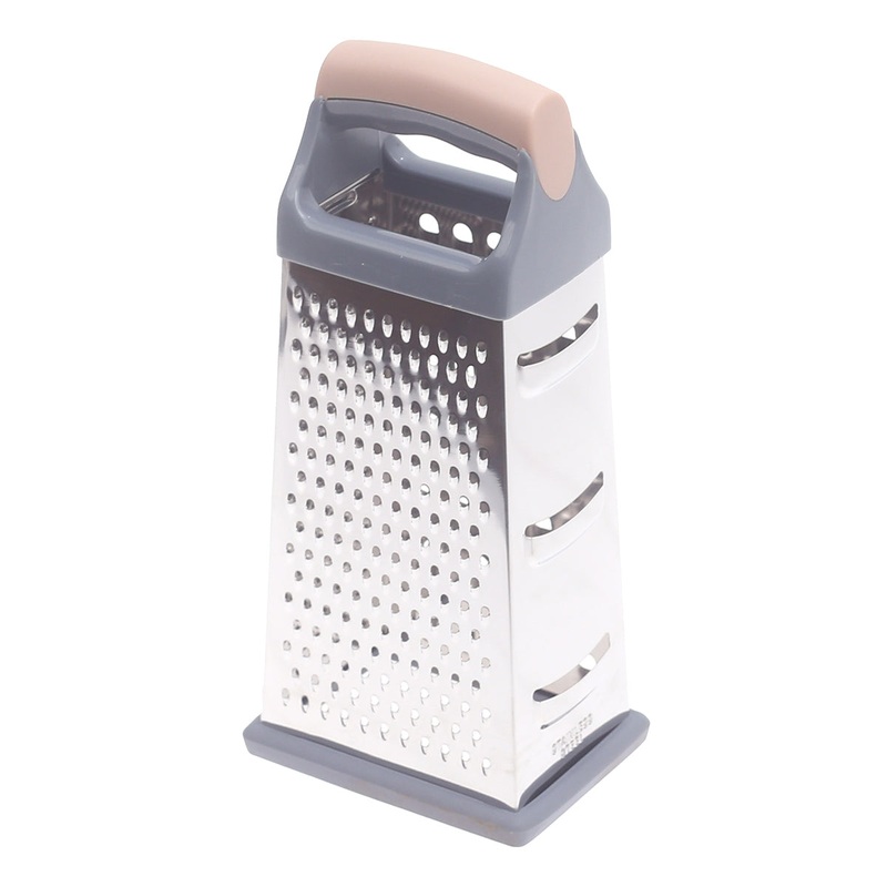 Meet your new go-to kitchen essential the FP-0014 Stainless Steel Grater. This 4-sided grater offers multiple grating and slicing options to tackle everything from cheese and veggies to chocolate and zest. Its sleek stainless steel body ensures long-lasting sharpness, while the soft-grip handle and non-slip base provide comfort and safety during use.