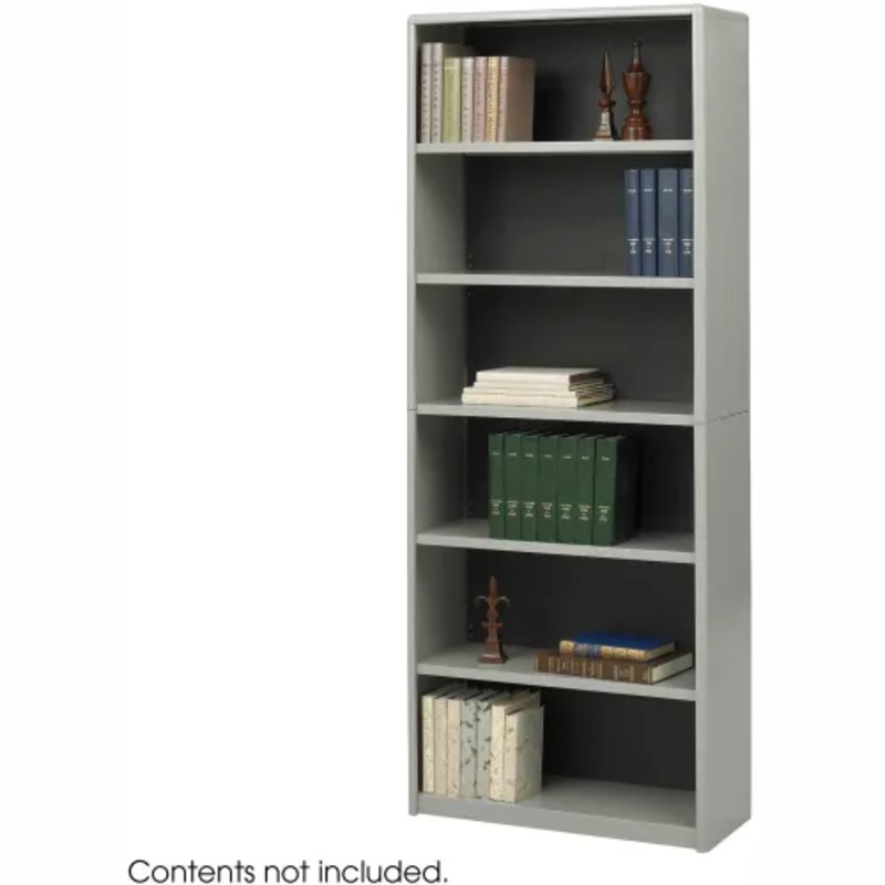 Economical, sturdy, and strong with the ValueMate Bookcases you can’t go wrong The shelf and exterior of the bookcase are constructed of steel and the back is made of solid fiberboard. Attractive, plastic snap-in radius corners make assembly easy and add to the overall strength of these units. Generous 12″ deep shelves accommodate 3-ring binders and large publications. Includes six shelves. Gray finish.