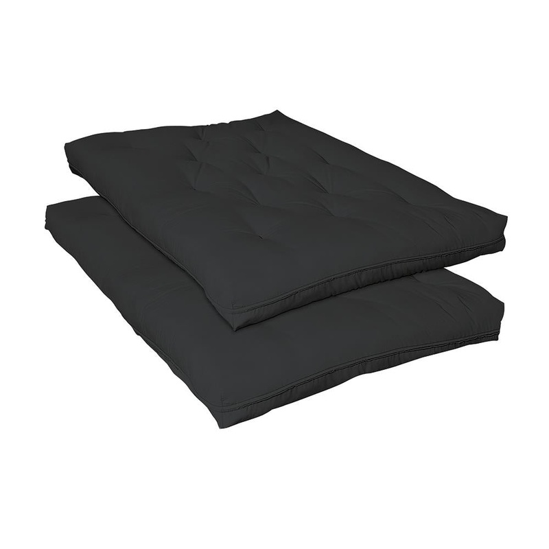 Expertly crafted from high quality materials, this premium futon pad promotes cozy comfort and restful relaxation. Two five-inch foam pads are enhanced by five layers of cotton blend batting for a luxuriously comfortable feel. With twice the longevity of regular polyurethane foam, its dense fiber adds extra durability. Quality inner springs are constructed using hardened steel, providing firm and comfortable support. Available in multiple colors to match with any room, this appealing futon is perfect for lounging in style. Includes: One (1) futon pad