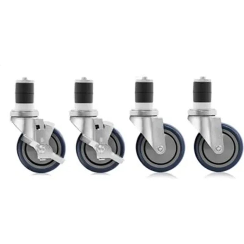 T-128 Series 4″ non-marking Casters. 1-1/2″ stem diameter.Set of 4 casters with 2 brakes.
