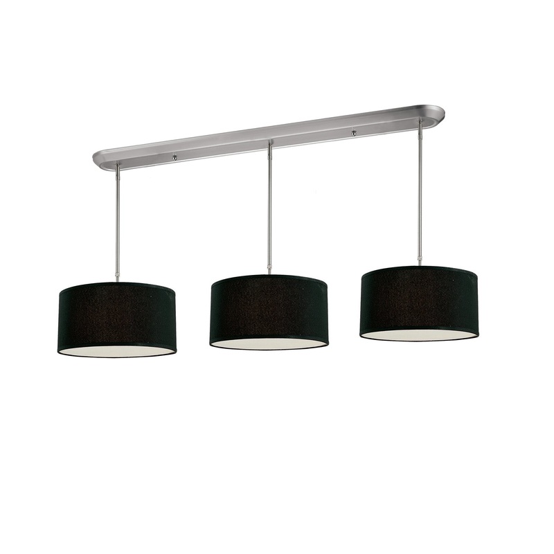 Elegant and contemporary best describe this beautiful nine light fixture. Finished in brushed nickel and paired with black shades, this nine light fixture would be equally at home in the game room, or anywhere else in the house needing a touch of timeless charm. Adjustable rods are included to ensure the perfect hanging height.