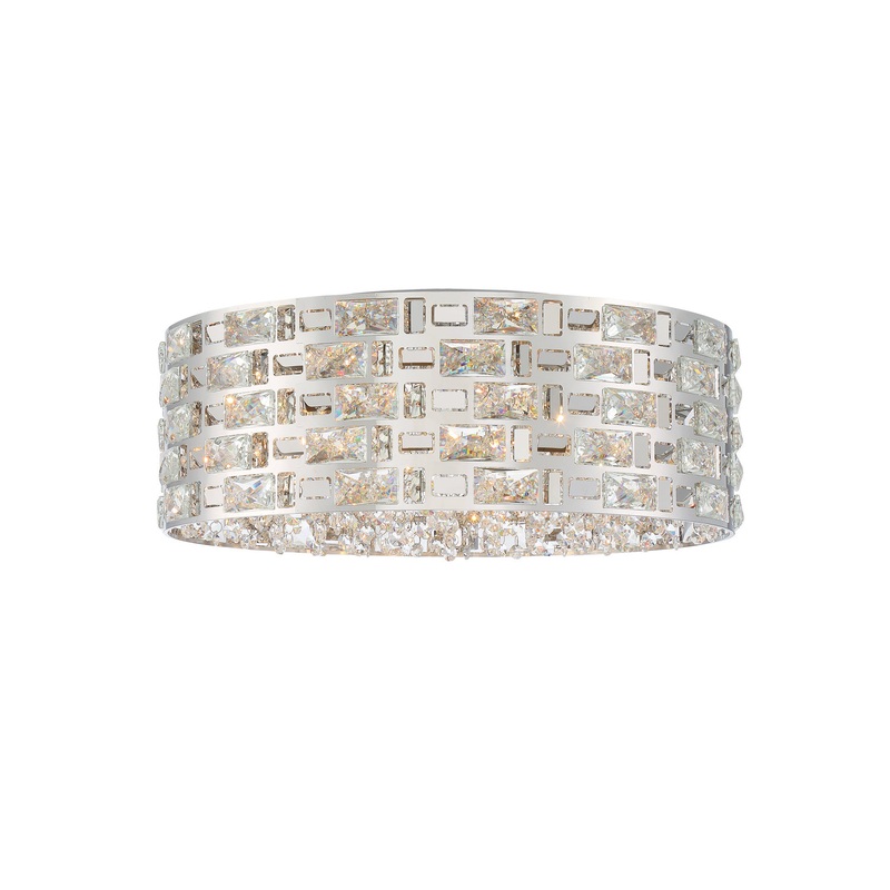Transform a chic bathroom with the elegant crystal details from this chrome ceiling light. Featuring a rounded silhouette, the radiant chrome frame is adorned with beads and brilliant accents.Width: 21.25"Height: 7.25"Length: 21.25"Weight: 15.00 lbBulbs: 7