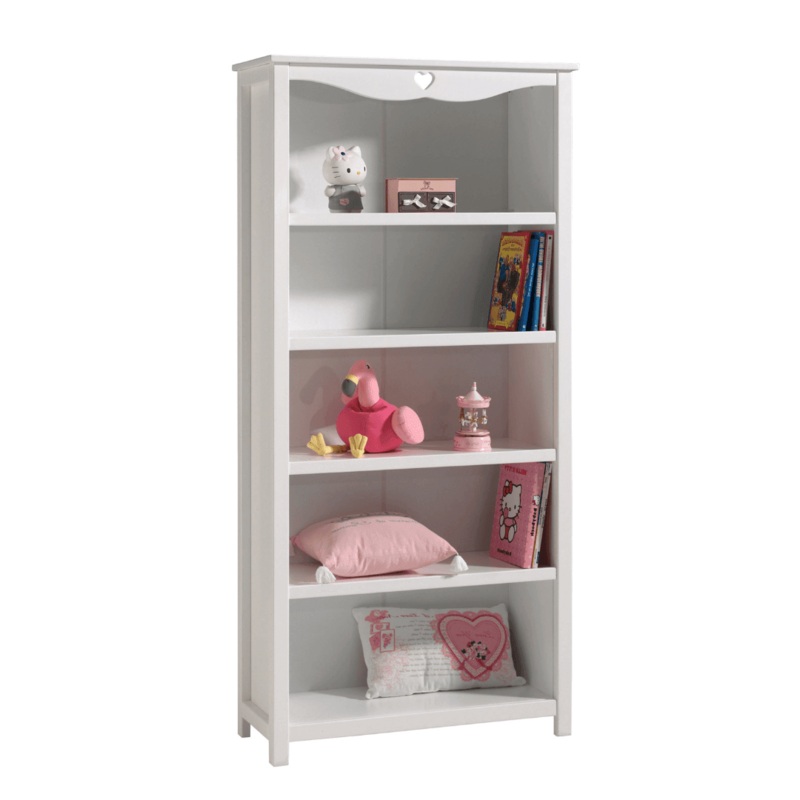 Az AMORI kollekcibl szrmaz polc gynyr s praktikus kiegsztje brmely helyisgnek. Kivl minsg fbl kszlt, lnk fehr szn kivitelben, amely friss s hvogat lgkrt teremt. A szvnek s az elegns vonalaknak ksznheten ez a knyvespolc romantikus hangulatot raszt, kitn vlaszts lesz kislnyod szobjba. A 4 polc rengeteg trolhelyet biztost.