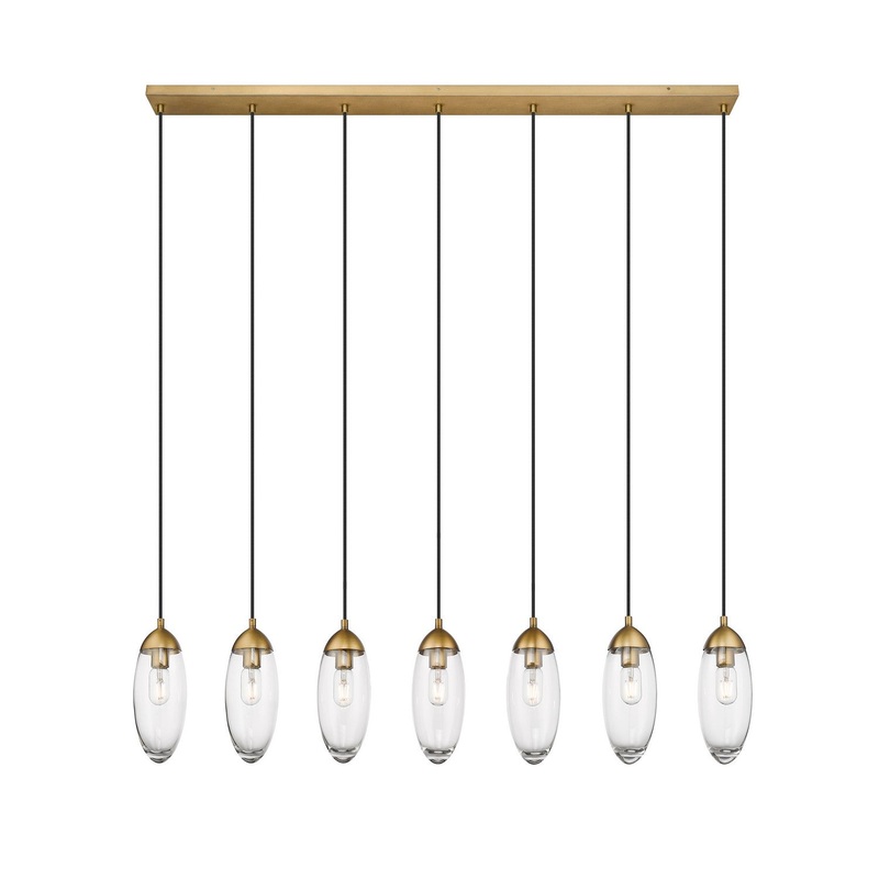 Customize a modern interior design scheme lighting suited to sleek elegance. A careful arrangement of delicate glass teardrop shades forms a minimalist silhouette with maximal impact as this seven-light chandelier becomes an expression of sophistication in