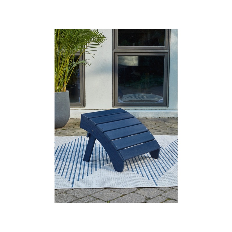 Item:P009-813DescriptionAdd cottage-quaint charm to your outdoor oasis with the Sundown Treasure ottoman in blue. Made of MEGA TUFF high-density polyethylene material, its sure to weather the seasons beautifully. The ottomans slatted styling with sloped sh