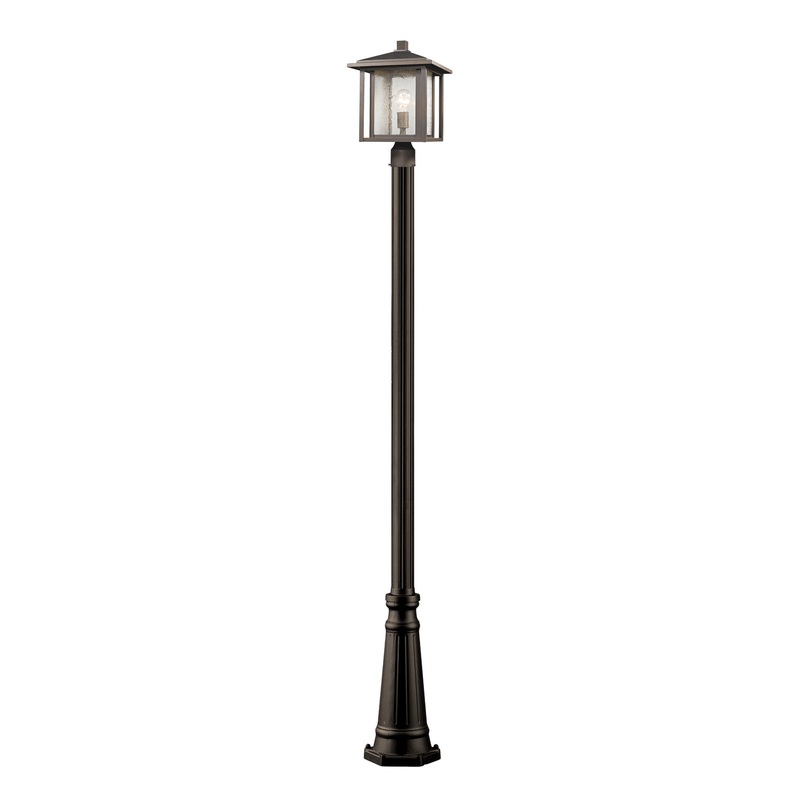 Complete a redesign of an exterior space with this charming outdoor post mount fixture. Enjoy the warm look and urban feel of oil rubbed bronze aluminium in a dual frame housing that shields a stylish seedy glass shade.
