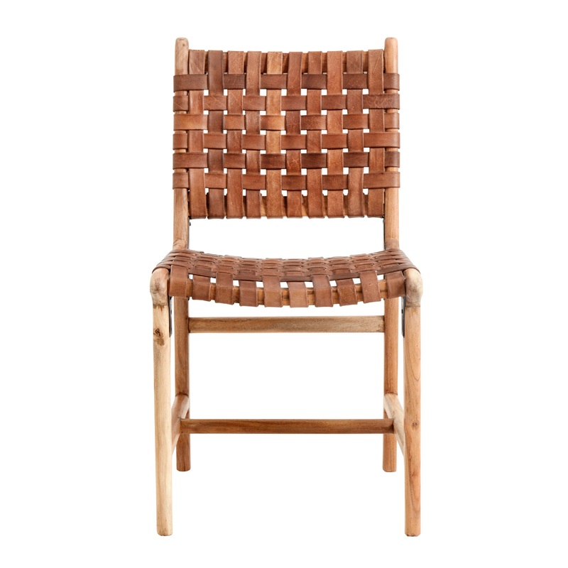 The chair is handmade with a brown wooden frame and a nice braided leather seat.The chair is a classic dining chair that can fit into many rooms and stylings.Please note that there are colour variations in the acacia wood from light to dark colour.NET WEIG