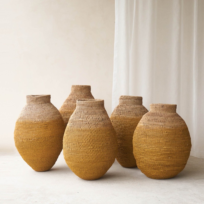 The Zimbabwean Buhera women who created the baskets do so in a stunning display of old weaving techniques. The outside of the baskets would be covered in cow dung to make them waterproof, which was traditionally done to store mealie meal and beer in them.