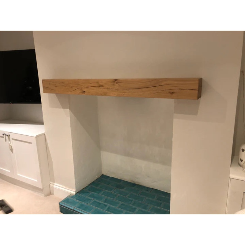 Our oak beams are of construction grade so they will have knots and splits which add character to the finished mantle look.