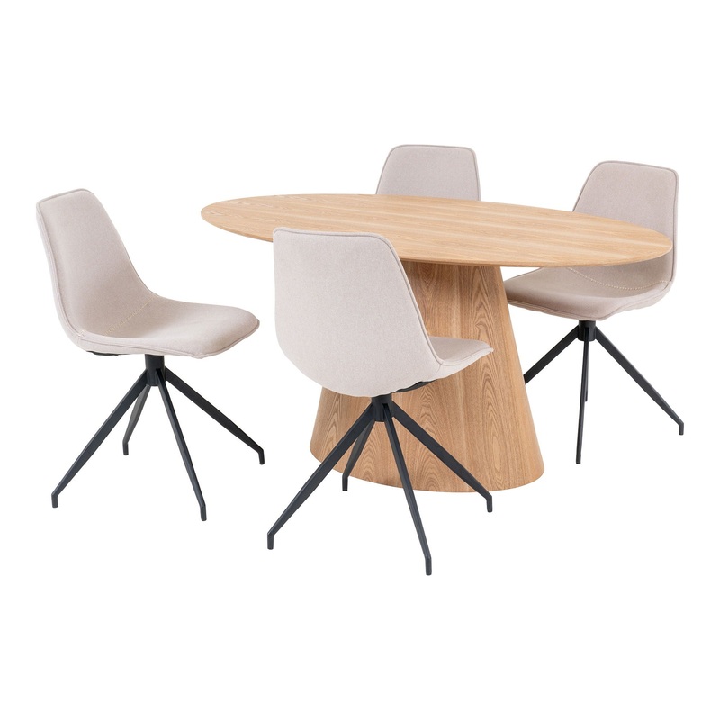 A Bolton & Monaco tkezszett tkletes vlaszts a modern otthonok szmra, ahol a knyelem s a stlus egyarnt fontos. A kszlet 4db bzs szn forgszket (54x48x86 cm) s egy ovlis, natr krisfa asztalt (160x90x75 cm) tartalmaz, amelyek harmonikusan illeszkednek egymshoz. Ez a szett idelis vlaszts a csaldi sszejvetelekhez, barti vacsorkhoz, vagy akr csak egy kellemes htkznapi tkezshez.
