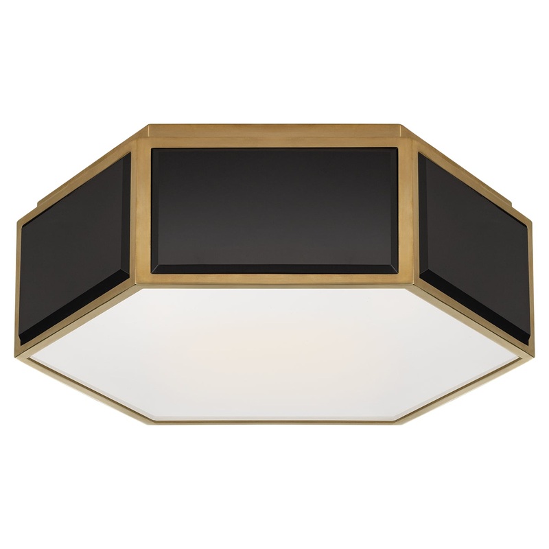 Bradford Small Hexagonal Flush Mount in Black and Soft Brass with Frosted Glass