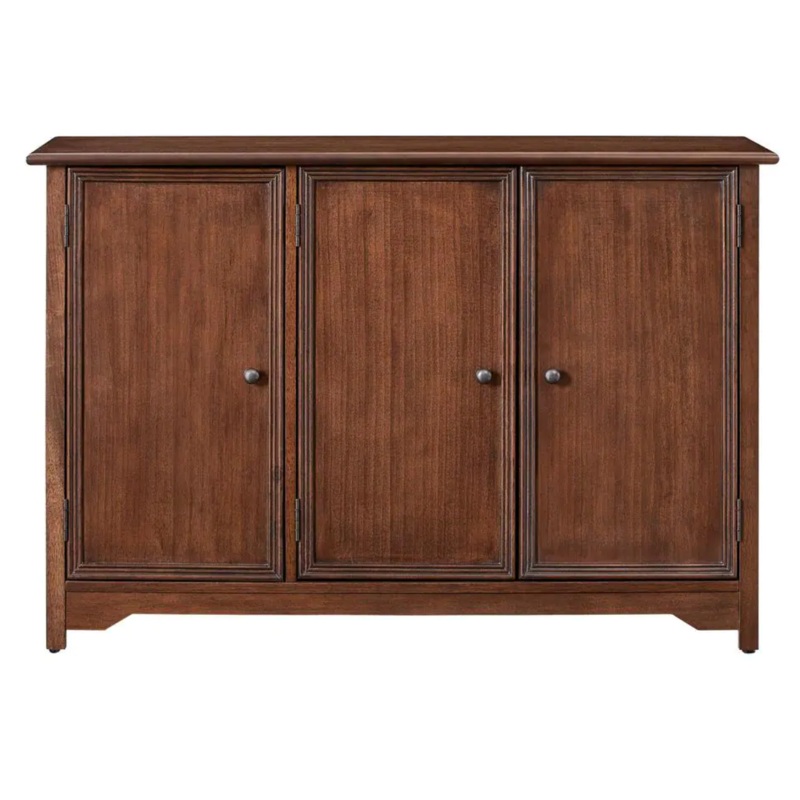 The lustrous finish of this sideboard from our Bradstone Collection makes this a piece that will accent any kitchen or dining room decor. The doors boast beautiful recessed panels with molded edges. Adjust the storage space behind the doors using the adjustable shelves.