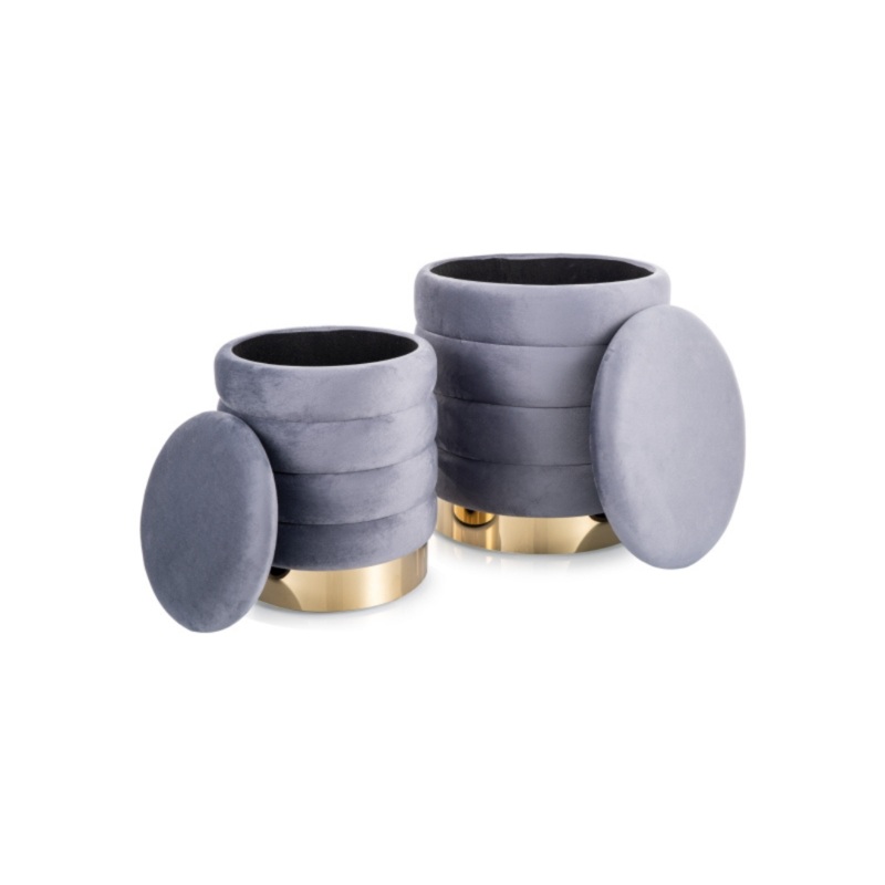 A brsony krpitozssal rendelkez Britta puff szett egy elegns kiegszt, mely kt klnbz mret termket tartalmaz. Vzszintes varrsaival, s arany szn fm dsztsvel stlusos s egyedi megjelenst nyjt. Sokoldal felhasznlsra alkalmas, s beptett trolhellyel is rendelkezik. Vilgosszrke, s bzs sznekben kaphat.