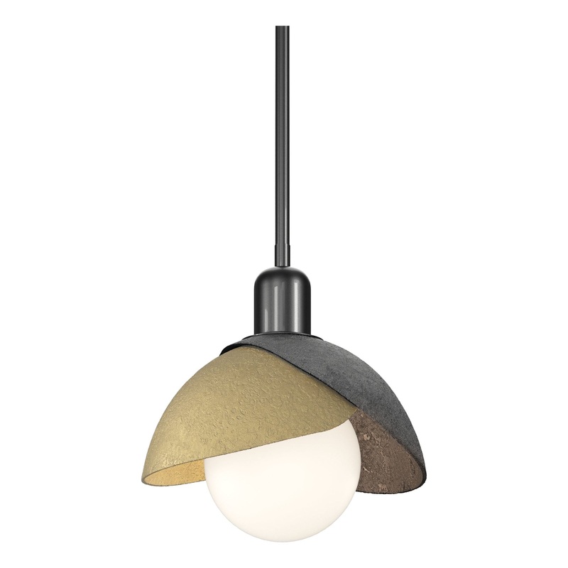 This double-shaded Brooklyn Mini Pendant offers forged steel shades with a two-tone option of contrasting colors to be selected from among our 11 standard interior finishes. A large exposed globe bulb is embraced by the Brooklyn's shades.