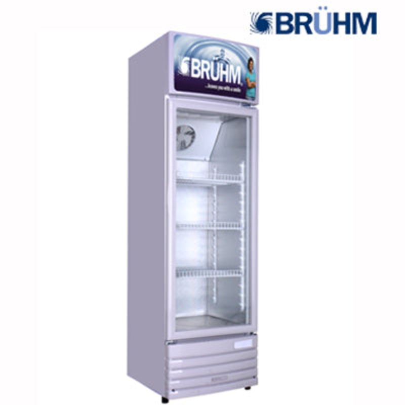 Bruhm 329 Single Dispaly Beverage CoolerDual layer tempered glass doorSecurity lock and keyMechanical Temperature control with temperature displayAluminum door frameGlass doorEvenly distributed air cooling fanadjustable shelvesInterior LED lightRecessed ha