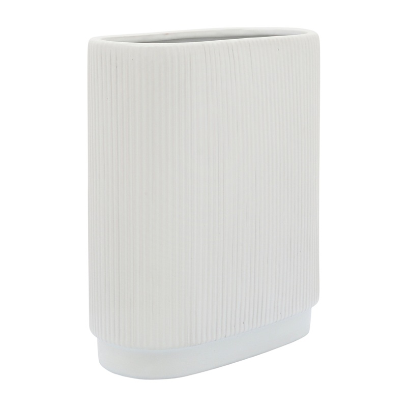 Live simple! This high quality ceramic vase comes in simple boxy shape in a classic white color. The contemporary vase includes a trendy ridged design. This stylish vase will provide you a blank slate to bring your personal flair to any home or office space. Mix and match colors and types of flowers for a custom look that matches your design and tastes, showing it off as a stunning table centerpiece or a decorative accent on any desk, counter, mantle or shelf.
