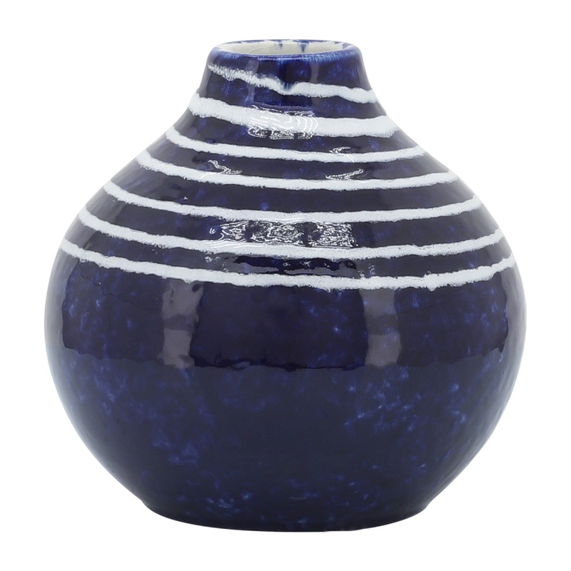 Add bursts of creative style to your home or office with one of these gorgeous ceramic vases. The vase comes in a rounded shape with a unique primeval design, merging prehistoric artistry with modern design elements and high quality materials . It comes in navy blue with white accents. After adding your favorite flowers, display it as a table centerpiece or accent any mantle, bookshelf, coffee table or desk. This gorgeous vase will be a simple yet stylish addition to any room in your home or office, brightening up the place and your mood!