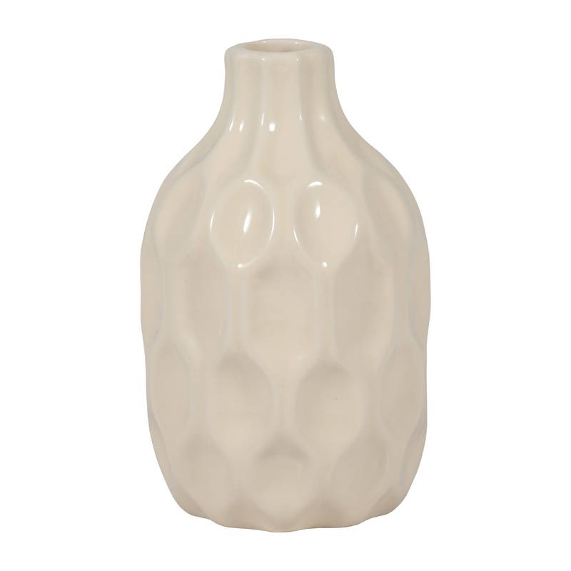 You’ll buzz with delight after adding this stylish honeycomb vase to your home or office decor! Crafted out of high quality ceramic, this unique vase comes in a classic ivory color and is stylized with a trendy dimpled design giving in a honeycomb like appearance. Add in your favorite flowers, greenery or other design elements for a custom look all your own, displaying it on any mantle, desk, counter, table or shelf for an instant style upgrade. This stunning vase would also make gorgeous decor for any wedding or other formal event.