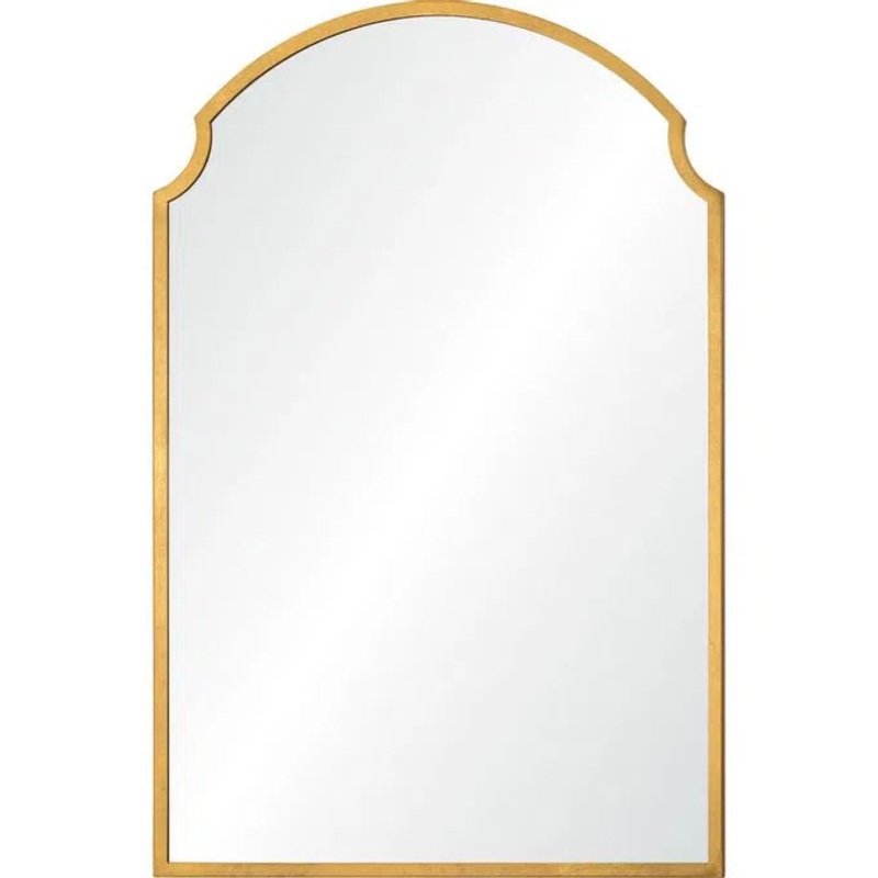 Regal radiance takes focus in this mirror design. The marriage of its romantic structure and the gold leaf finished iron creates a compelling combination fit for the classic or mid-century modern interior. At 36 inches in height and 24 in width, it fills a space without becoming overwhelming.