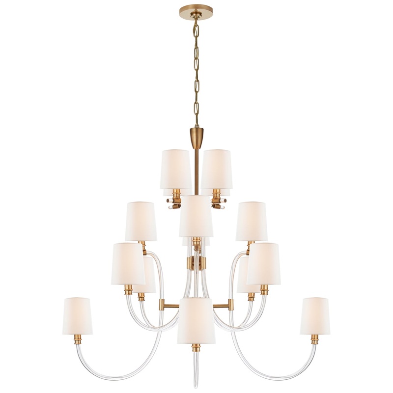 Clarice Large Chandelier in Crystal and Antique-Burnished Brass with Linen ShadesWidth: 44.25"Height: 40.75"Weight: 25.00 lbBulbs: 16 x 40.00W B11 E12 Candelabra