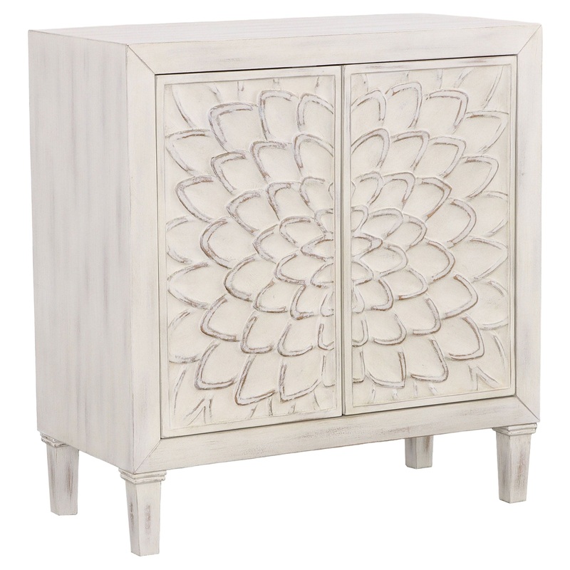 Clarkia Accent Cabinet with Floral Carved Door White