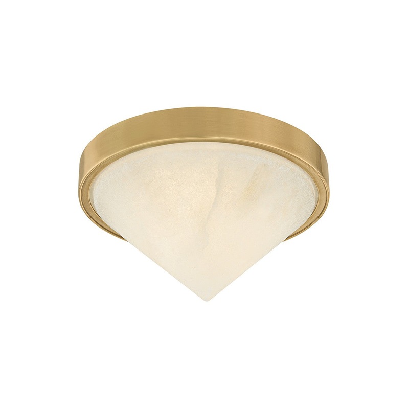 Prized for its unique natural veining, a single piece of carved alabaster creates the jewel-like shade of the miniature Colmar flush mount. This artistic stone can light replacement features a conical shade surrounded by a Vintage Brass border that lends a