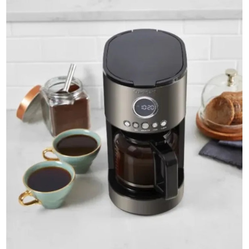 Cuisinart 12 Cup Auto Drip Coffeemaker - Black Stainless. Easily enjoy up to 12 Cups of coffee at home or on the go. Easily read the measuring marks on the Glass Carafe. Fully programmable with Auto ON, keep an eye on the time with the internal clock. The