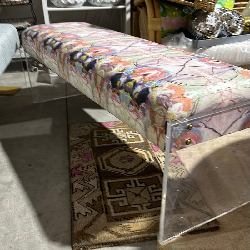 Crafted with precision and expertise, our Acrylic Bench offers a sleek and modern design for any space. Choose from a variety of custom fabrics or the unique Windy OConnor Chalks Fabric or add a personalized touch with your choice of fabrics. Experience the durability and elegance of our acrylic benches today.