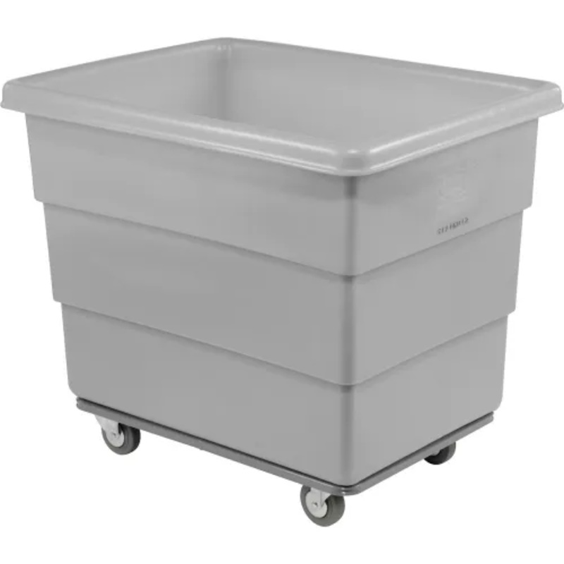 Seamless molded polyethylene will not leak and has smooth walls and corners for easy cleaning. 0.225″ wall thickness for superior durablility. Step wall design offers great sidewall strength to prevent bulging. Trucks nest when empty to save space. Powder coated steel chassis offers greater load capacity. 2 swivel, 2 rigid rubber casters for smooth rolling. Limited 1 year warranty.