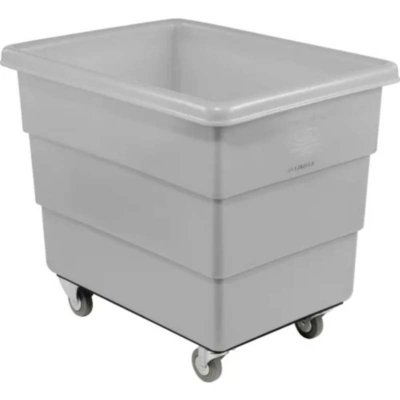 Seamless molded polyethylene will not leak and has smooth walls and corners for easy cleaning. 0.225″ wall thickness for superior durablility. Step wall design offers great sidewall strength to prevent bulging. Trucks nest when empty to save space. Strong plywood base for long life. 2 swivel, 2 rigid rubber casters for smooth rolling. Limited 1 year warranty.