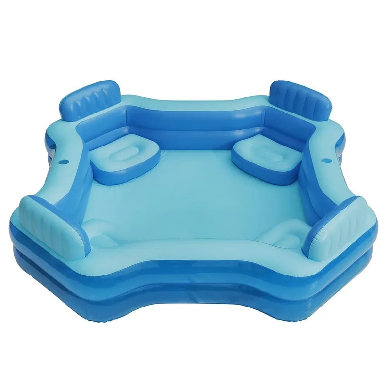 Deluxe Family Comfort PoolFun with the whole family is waiting for you with the Deluxe Comfort Pool. This durable pool is made with puncture-resistant materials, and features a 2-tier construction and efficient valves for easy setup. With 4 cushioned seats