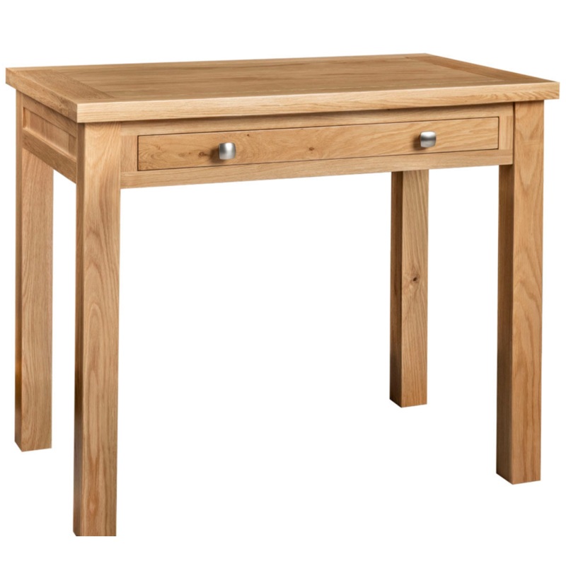 This small desk is a great addition to the Derwent Oak collection, with square metal knobs on the drawer.
