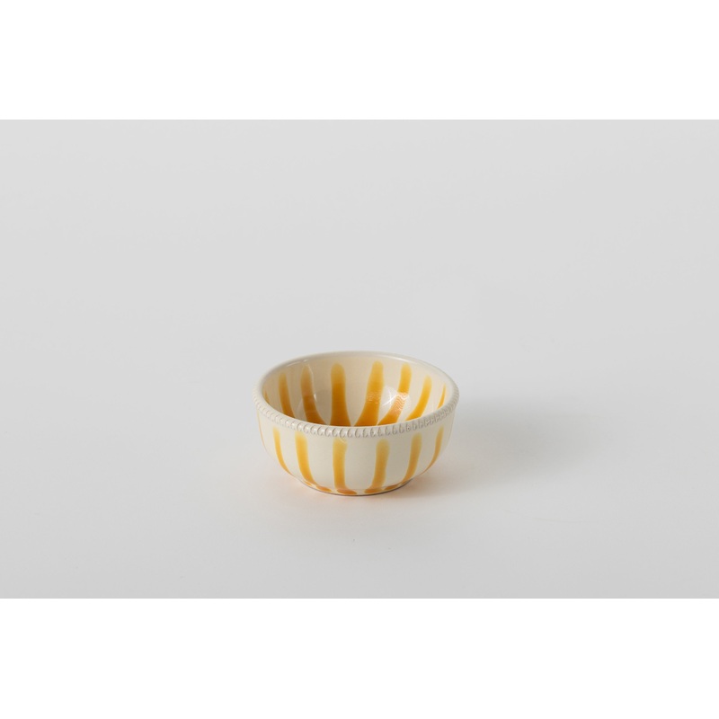 Add a pop of color to your table with the Alex and Trahanas Dip Bowl in Orange, inspired by the lively hues of an Italian summer. Hand-painted in Puglia, Italy, this charming striped ceramic bowls are perfect for serving dips, olives, and snacks.