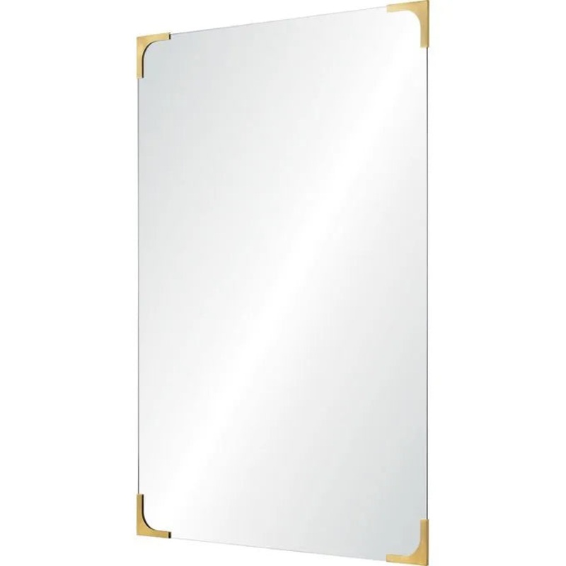 This unique mirror design proves the smallest details can make the largest impact. With antique brass-coated metal elements framing each corner of the piece, it carries equal doses of character and sophistication into the modern living space. The rectangular mirror is unique with its beveled center.