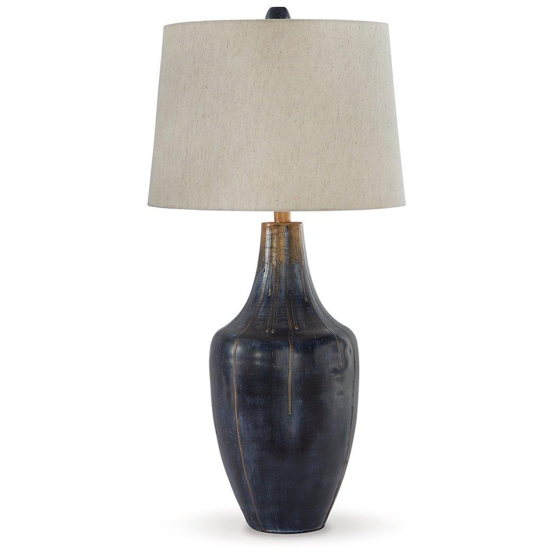 Dripping with pure artistry, this table lamps color palette flaunts chic panache wherever its placed. Youll love how the beautiful glow casts contemporary charm against the distressed metal for a captivating finish. More About This Product Product DetailsM