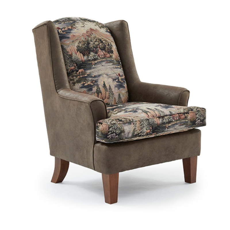 Bring traditional beauty back into your home with the refined Andrea. The classic wingback chair has a softly curved crown and three finish options for the stylish wood legs: Dark Walnut, Espresso, and Honey Birch.Choosing the Andrea with the 'Field & Stre
