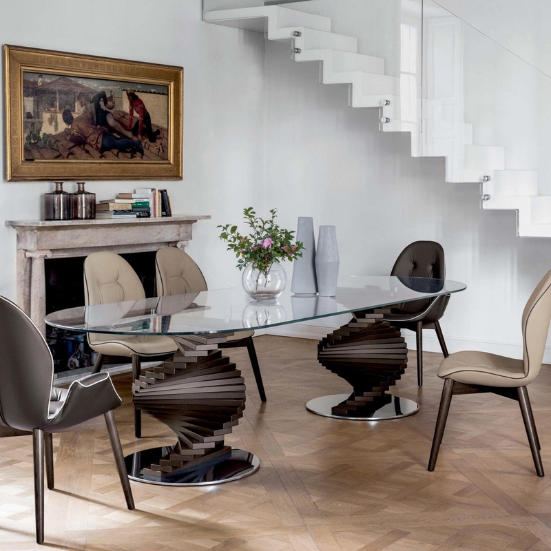 A Firenze asztal legfbb jellemzje a talapzat: tmr Canaletto difbl vagy tmr stt tlgyfa lcekbl kszl. A lcek egyenknt vannak prostva, spirlis szobrot alkotva, amely elegns optikai illzit kelt. A szerkezetet a klnbz mretekben kaphat veglap teszi teljess. A Tonin Casa eredetisge, a precizitst, a minsget s a praktikumot tvzi: az asztal ugyanis szimpla s dupla lbazattal is kaphat. Elrhet mretei anyagtl fggen: 120×75 / 140×75 / 120x250x75 / 120x300x75 cm.