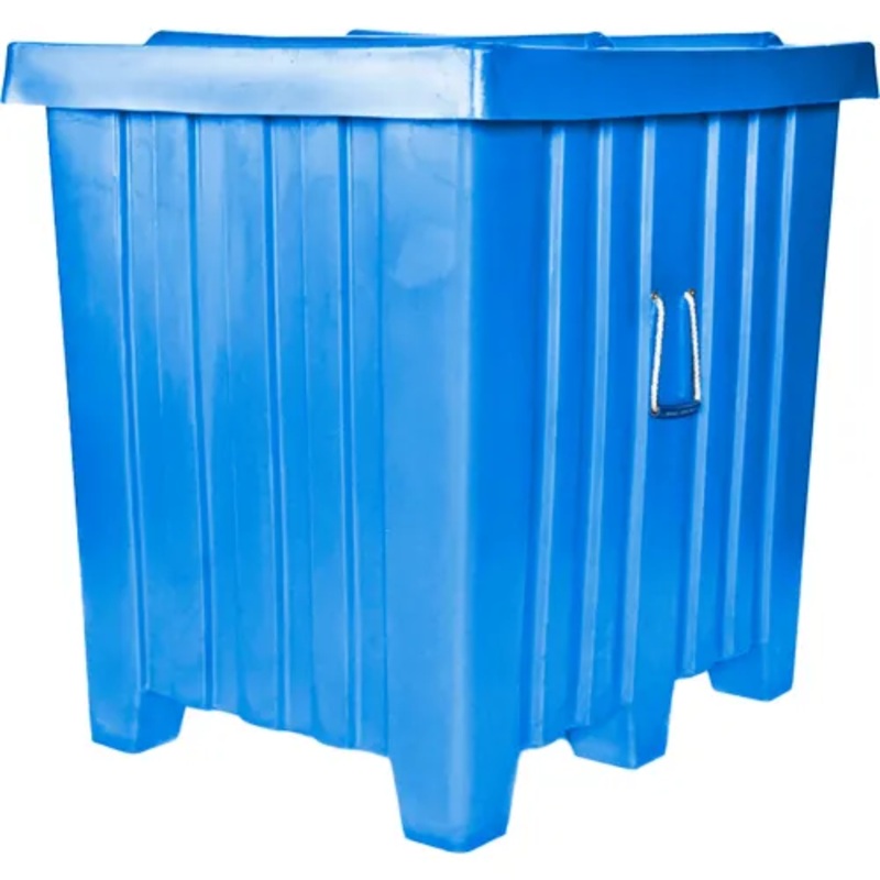 Forkliftable Plastic Bulk Shipping Container w/ Lid, 42″L x 34″W x 42″H, 800 lb. Capacity, Blue