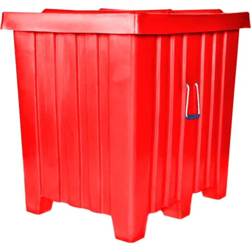 Forkliftable Plastic Bulk Shipping Container w/ Lid, 42″L x 34″W x 42″H, 800 lb. Capacity, Red