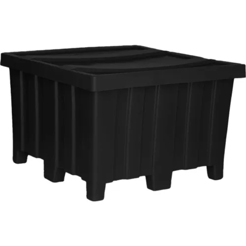 Forkliftable Plastic Bulk Shipping Container w/ Lid, 44″L x 44″W x 29-1/2″H, 1200 lb Capacity, Black
