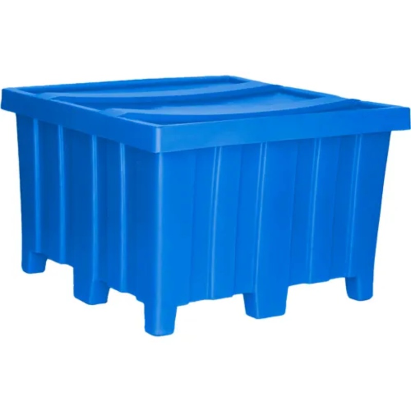 Forkliftable Plastic Bulk Shipping Container w/ Lid, 44″L x 44″W x 29-1/2″H, 1200 lb Capacity, Blue