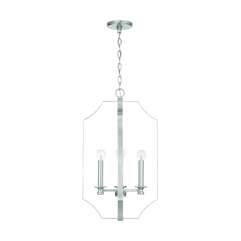 Specifications for this Capital Lighting Four Light Foyer PendantWidth: 15.00"Height: 25.50"Length: 15.00"Weight: 8.50 lbChain: 120Wire: 144"Canopy: 5"W x 0.75"HLight InformationLight Bulbs and/or Light Source are not included.Unsure what bulbs to add to y