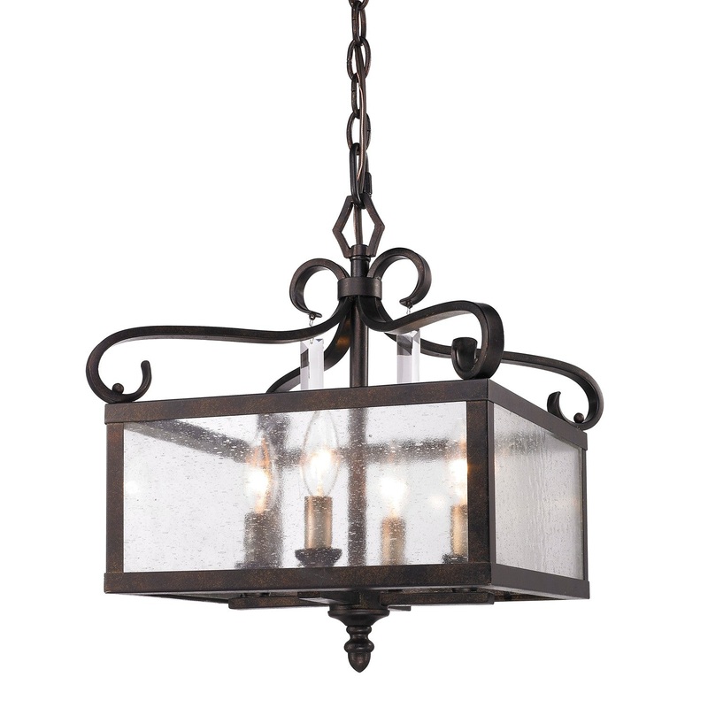 Nostalgic design with a modern twist, the Valencia collection draws inspiration from Early American ingenuity. The classic lantern is offered in multiple finishes with seeded glass panels that softly diffuse the inner light. Matching candlesticks and faceted crystals complete the nod to a bygone era and make this collection the perfect accent to a traditional home. This 4-light convertible pendant creates a stylish focal point.