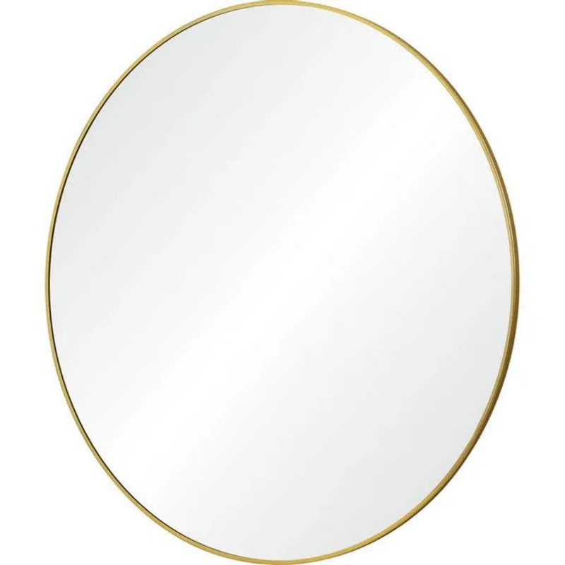 Set atop a vanity or entryway table, this round mirror adds fresh angles and dimensions to the home. The thin gold iron frame bringing a beaming tone to the space it rests within. With a 48-inch circumference, its size only enhances its opulent quality.