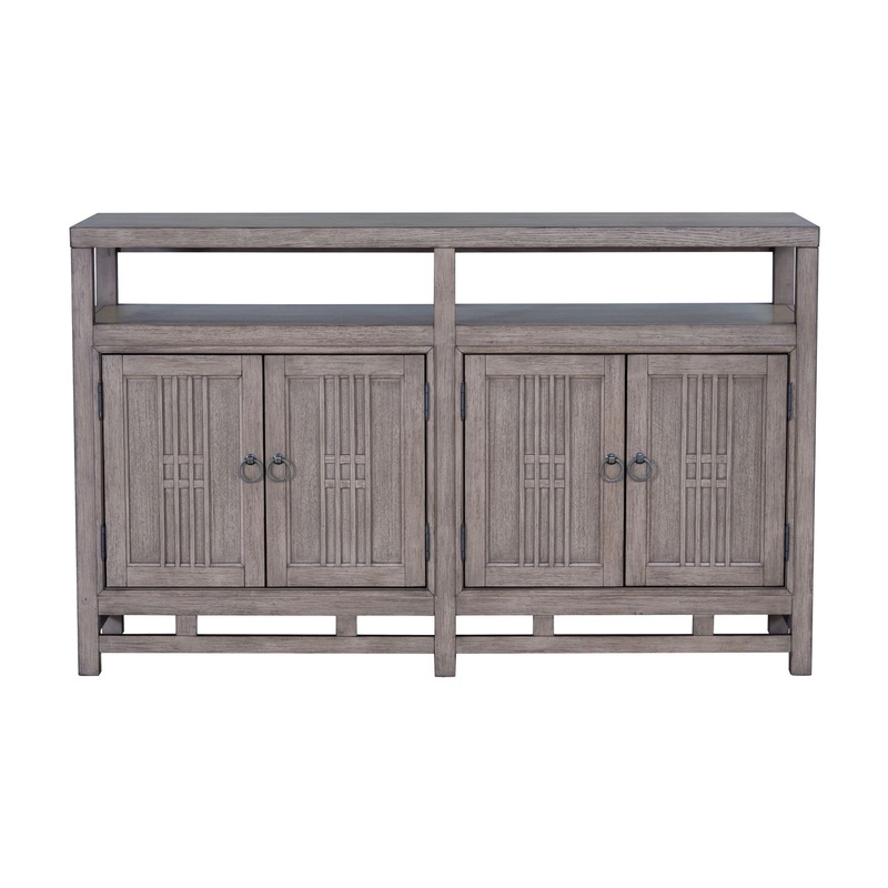 Warm and inviting, Fusion exudes a soft, warm elegance that's undeniable. Hand rubbed antique brass pulls on straight grain Oak in a subtle Dawn finish, work in perfect harmony with the unique transitional styling.Product FeaturesFour doorsTop open shelfFe