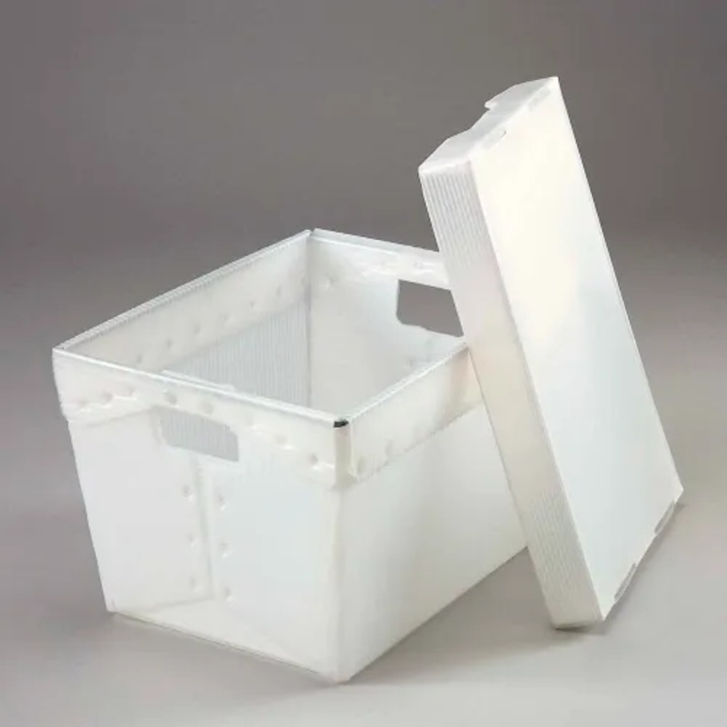 NESTING UTILITY TOTE AND LIDLightweight, yet tough, this corrugated plastic tote is steel band reinforced at the top for added strength and rigidity. Easy to clean, resistant to dirt, moisture and grease. Convenient hand holes for easy carrying. Nests for