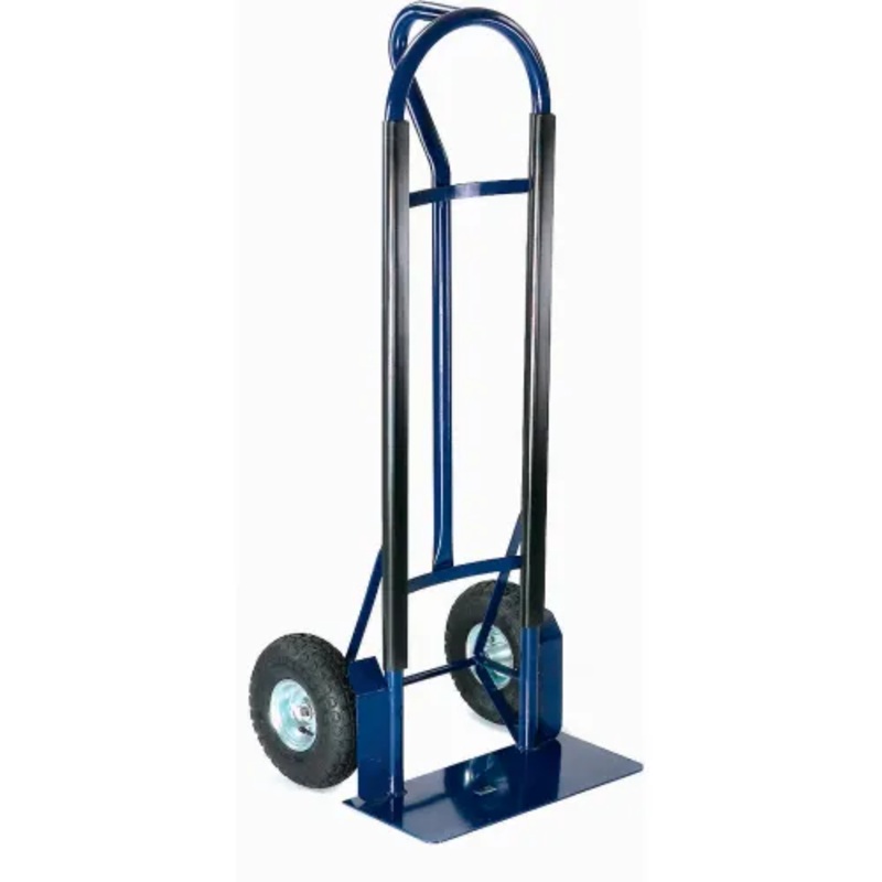 High quality, 1-1/4″ diameter steel tube trucks are perfect for day-to-day work in warehouse, receiving and delivery. MIG welded throughout with double welding at critical stress points to withstand rugged use. Loop Handle is best for pull/lift operation and higher load stacking. 10″ x 3-1/2″ full pneumatic ball bearing wheels offer best load protection and roll smoothly over roughest surfaces. Durable enamel finish resists rust and scratches. Includes wheel plates and “wear-guard” strips to help prevent load damage, and an extra wide 20″ x 7″ noseplate to accommodate oversized cargo. Assembles easily. 5 Year Frame Warranty.
